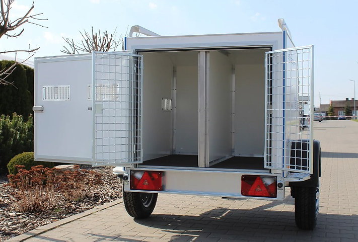 Les remorques légères pour le transport d’animaux de petite et moyenne taille, par exemple des chiens, des renards, sont une solution innovante, caractérisée par un design original et d’excellentes propriétés d’isolation, qui fonctionnent bien à basse et haute température. Grâce à la structure insonorisée, étanche et ventilée, les animaux transportés se sentent à l’aise et en sécurité.